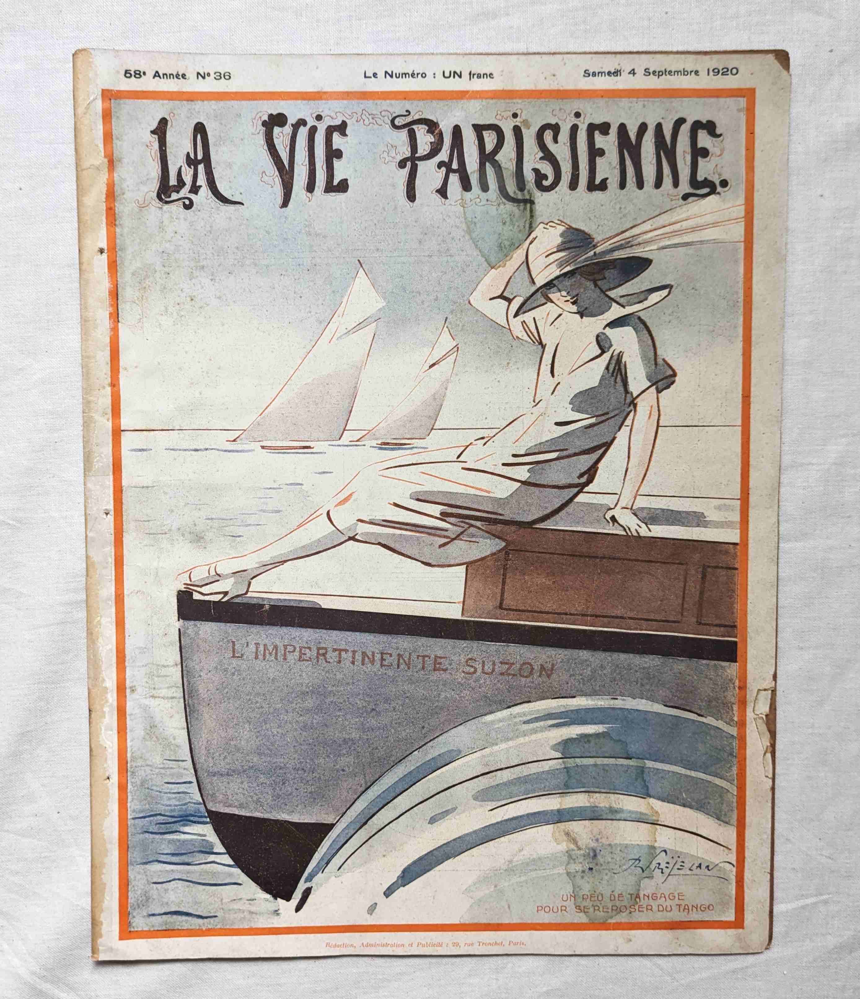 1920年 フランス アールデコ雑誌 La Vie Parisienne Rene Prejelan/Fabien Fabiano/Vald'Es/Armand Vallee 女性画 挿絵イラスト